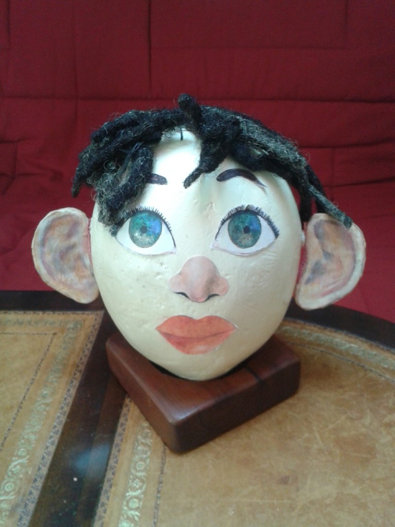 Voyage à travers les sens, empli de refrains, comptines, formules, onomatopées, jeux des doigts. Les bébés découvrent un œuf d’autruche qui, au début tout nu, devient un vrai personnage. Sur son chemin il rencontre des animaux et à chaque rencontre sur sa coquille apparaissent tour à tour : les yeux, la bouche, le nez, les oreilles, les cheveux…